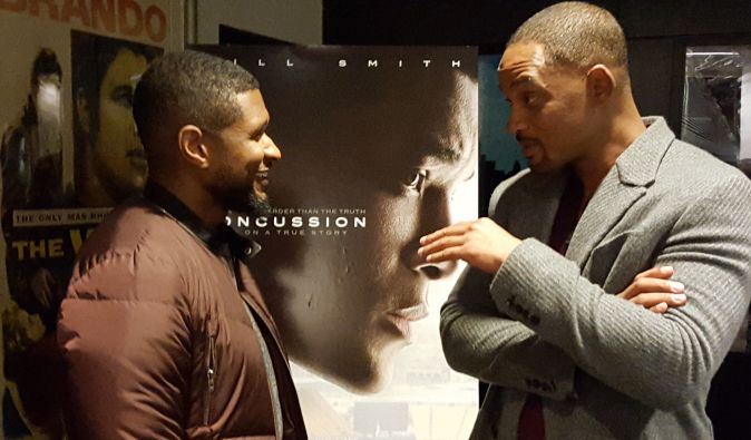 Some of the guests last night at the Sony screening room and later for a seated dinner at the Sony Club included Morse and fellow cast mate Hill Harper, R&B/pop star Usher and his lovely wife Grace, actor Malik Yoba, Will’s son Jaden Smith, MSNBC’s Lawrence O’Donnell, actress Leven Rambin and new husband actor Jim Parrack, and director (“Lone Survivor”) Peter Berg, who moderated a short Q&A. I asked Will if he was still a Philadelphia Eagles fan– he is– and whether he’ll be nervous walking into an NFL stadium now. “I’m deeply conflicted about it,” he said with a laugh.