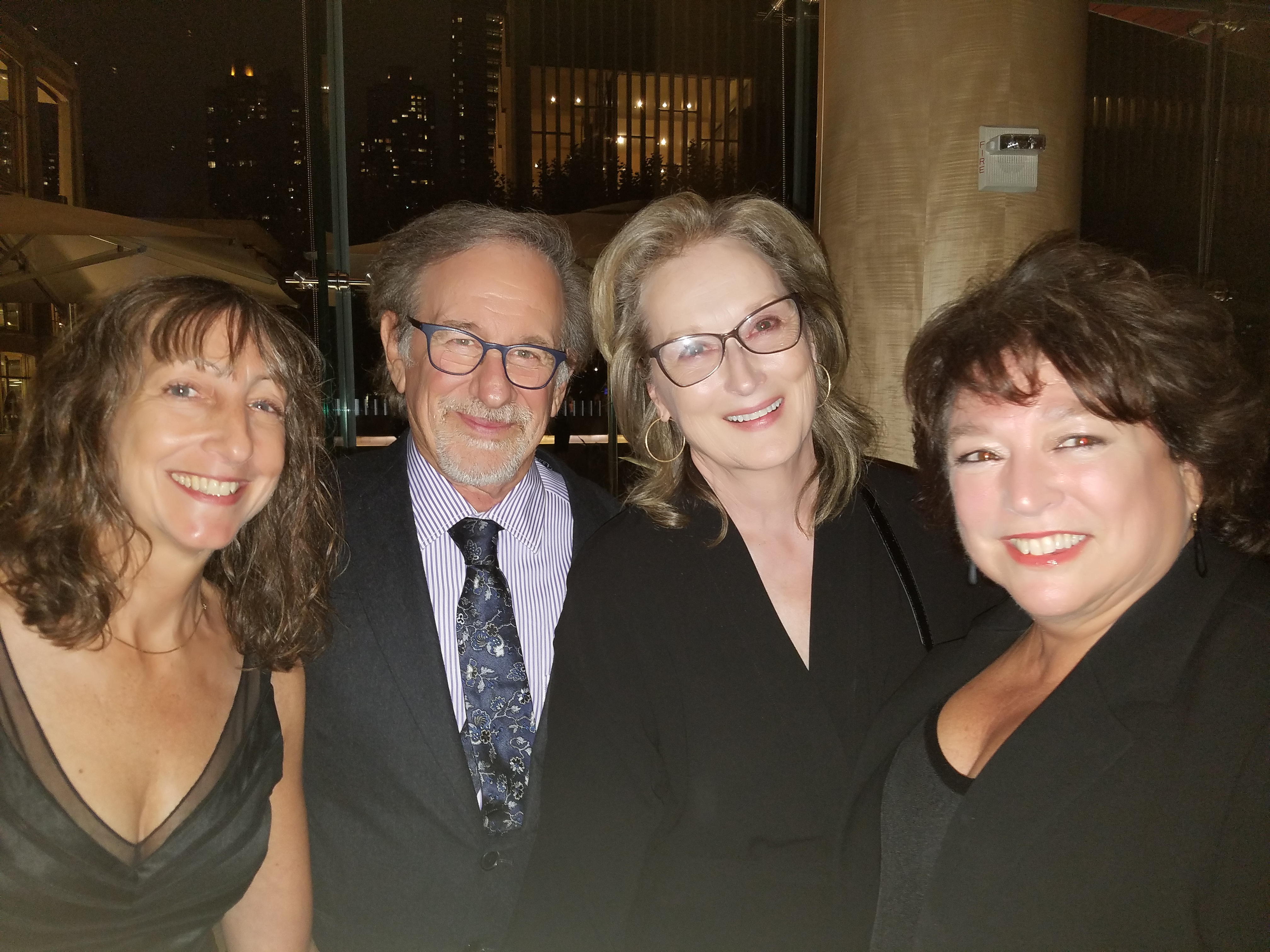 HBO welcomed a select crowd across the street for dinner at Lincoln Restaurant, where Spielberg and wife Kate Capshaw had the whole family– lots of kids, and lots of friends: Blythe Danner, her son Jake Paltrow, his wife photographer Taryn Simon, plus Meryl Streep, with her actress daughter Grace Gummer, her boyfriend Tay Straithairn (son of actor David) and Meryl’s brother Harry Streep; Tony Bennett, Mike Myers, Barry Levinson, Paul Haggis, Greta Gerwig, Danny Strong, plus HBO’s Richard Plepler, as well as actor Bob Balaban and writer wife Lynn Grossman, Gina Gershon, Marlo Thomas and Phil Donahue, Bennett Miller, and Spielberg’s legendary publicist since “Close Encounters,” Marvin Levy, the dean of Hollywood flacks.