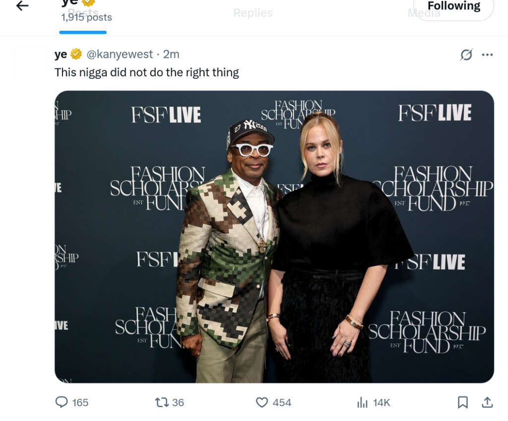 In 30 Tweets in one hour, Kanye attacks Spike Lee, ex-wife Kim Kardashian, Beyonce, Taylor Swift, Caitlyn Jenner, and Jews — the latter because antisemitism is his regular and not utterly boring way of making people look his way.