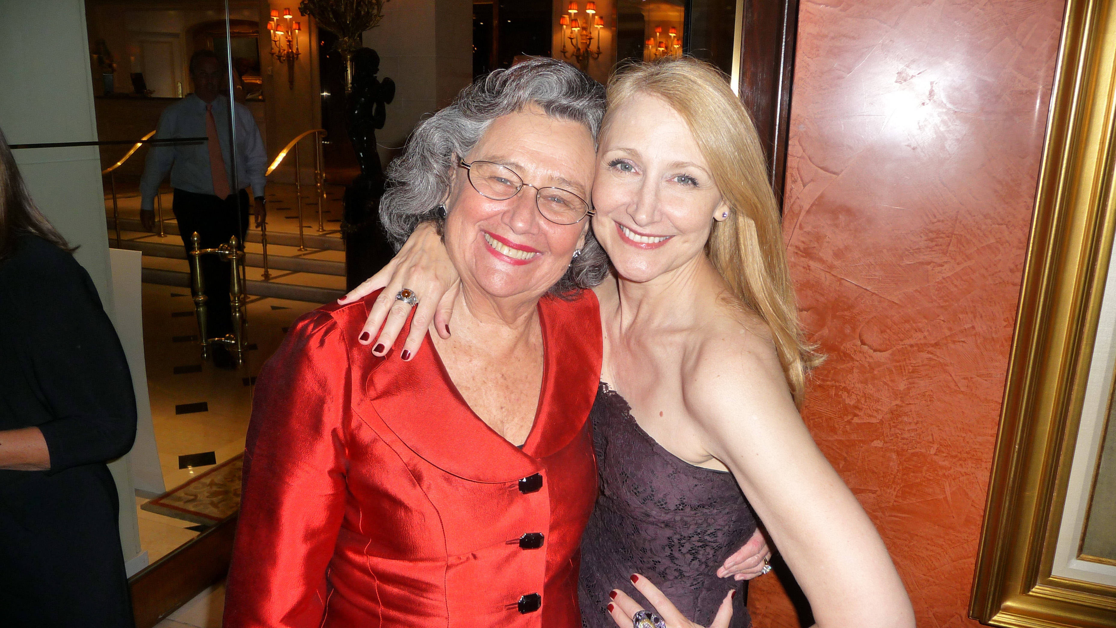 We got to meet Jackie, and one of Patty’s four sisters, Jacquelyn, at the premiere dinner for “Cairo Time” Monday night at the Plaza Athenee. The swanky dinner included New York Daily News publisher Mort Zuckerman, plus Patty’s bff Amy Ryan, Amy’s husband Eric Slovin, as well as the great Hoda Kotb from the Today Show, travel writer Peter Greenberg (who should still be on the Today show but isn’t), filmmaker Ken Burns, casting director and producer Amanda Mackey, actor Giancarlo Esposito, Laurie Dhue, writer extraordinaire Joan Juliet Buck, Pace Gallery owners Arne and Millie Glimcher and Al Roker and Deborah Roberts. (It was all put together by Peggy Siegal by remote control; she’s somewhere on a yacht in the Aegean!)