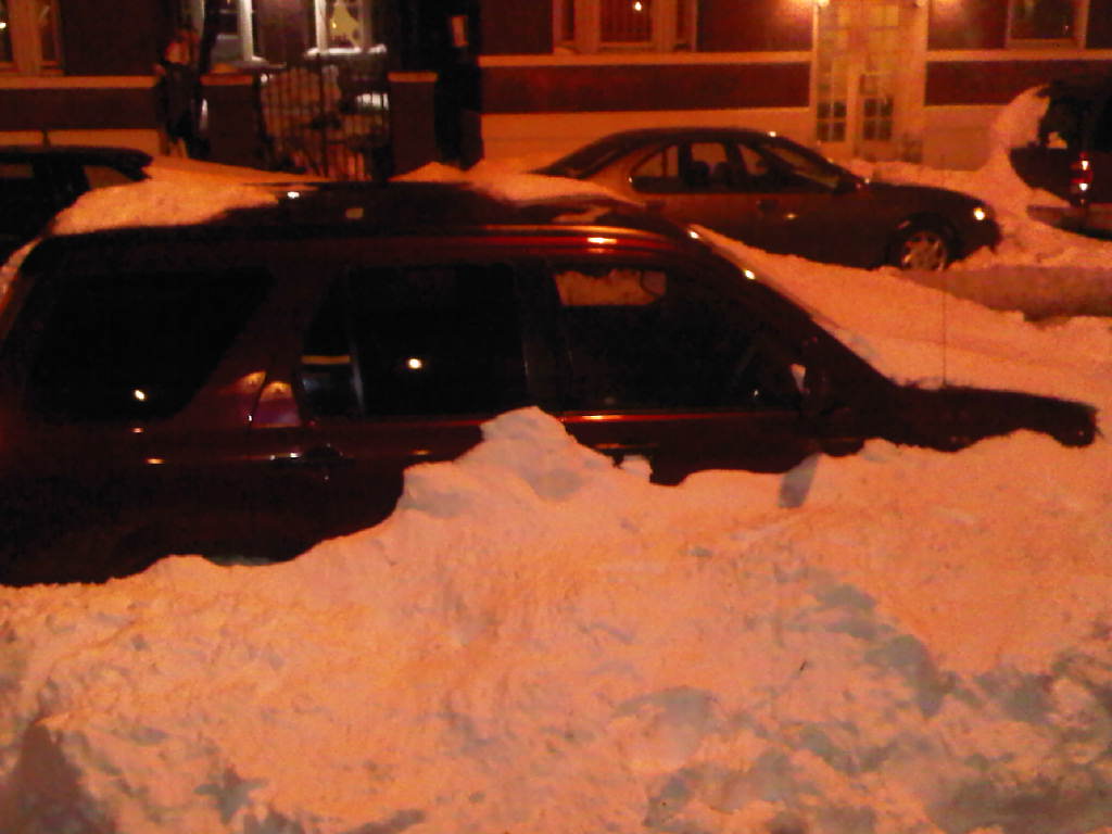 Yeah, I know it’s hard to plow sidestreets when idiots leave their cars on them. I don’t understand: when you hear a blizzard is coming, why don’t you move the car? This is what it looks like tonight on my street: