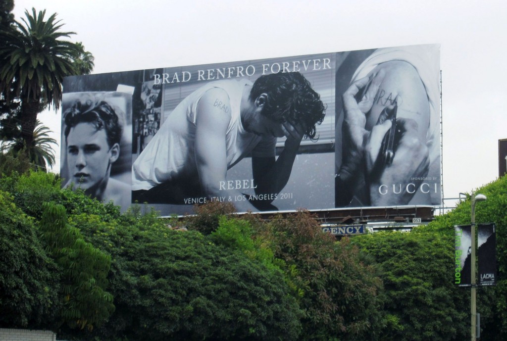 James Franco‘s short film, called “Rebel,” may make to the Venice Biennale after all. Or to the Venice Film Festival. Or to Venice, California. Late actor Brad Renfro has something to do with it, as you can see from the billboard on Sunset Boulevard. Franco had Renfro’s name cut into his arm. This is the evidence. At least he just had “Brad” carved. (It could also be Pitt.) The film is an art installation concerning James Dean, whom Franco played a decade ago. Gucci’s backing it. Franco is currently shooting his Sal Mineo movie in L.A. His first feature, “The Broken Tower,” opens at the Los Angeles Film Festival on June 20th. Later this summer comes “Rise of the Apes.” Rust never sleeps! More info as it comes in…Franco, PS, is currently on a road trip through Utah, looking at Earth art. (I think that means cliffs and stuff.) Luckily, he’s told us, in case he gets stuck for…some hours.