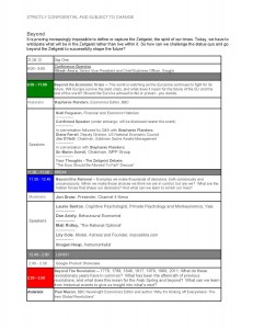 A Google spokesman had this to say: “This is a leaked, early stage document that’s subject to change between now and the event itself. As such we can’t comment on the content, but we look forward to welcoming lots of great speakers to Zeitgeist in May.”