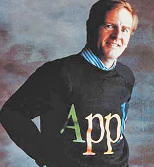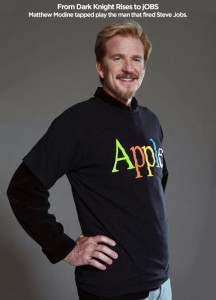 Matthew Modine–hot right now in the upcoming “Dark Knight Rises”– just got cast in the new Steve Jobs movie. This is the one starring Ashton Kutcher. Modine will play John Sculley, one of the founders of Apple. Sculley was president of the company from 1983 to 1993 was responsible for their many early successes. A falling out with Steve Jobs caused him to be ousted in 1993. Pictured below: Modine in an Apple shirt made for him by a friend. And Sculley in the real thing.