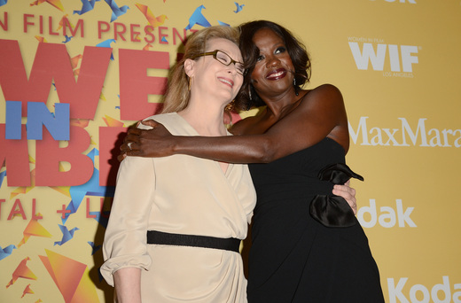 It’s only been three months since Meryl Streep and Viola Davis alternated winning acting awards for “The Iron Lady” and “The Help.” Streep finally won the Oscar for her film, but the two are still big pals. On Tuesday night in LA at the Beverly Hilton, Streep presented Davis with Women in Film’s the Crystal Award for Excellence in film. Meryl remarked, “My friend Viola was born poor with big dreams and she aimed high, she is a veteran of the battle of the black actor in show business. ”