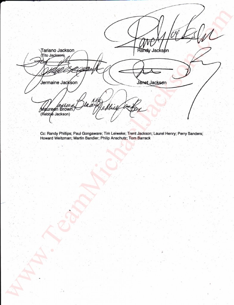 Who didn’t sign the letter? Marlon, Jackie, and LaToya. And Katherine Jackson, Michael’s mother. The letter was sent to everyone in the Jackson estate and to AEG Live and Colony Capital. But interestingly, it wasn’t sent to Michael’s estate attorney.