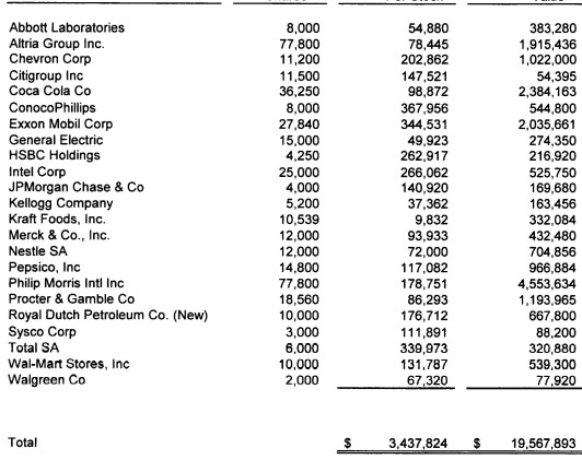 These are the same companies and stocks the Foundation had in 2008 and 2009. And they’ve increased in value. So at least the Foundation is getting good investment advice.