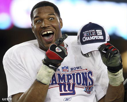 Michael Strahan was just announced and presented as the new co-host of “Live.” There’s some kind of weird synergy in the choosing of Michael Strahan as Kelly Ripa’s new permanent co-host today. Strahan played his whole career for the New York Giants. Wasn’t someone else connected to “Live” once a Giant legend, kids? Yes, Frank Gifford, husband of Kathie Lee, Regis’s long time partner before Kelly. And so it goes, the circle will not be unbroken. Let’s hope Straha takes a page from Regis Philbin’s playbook– he’ll have to go out three or four times a week, and bring back some good stories to entertain Kelly and the audience. What’s really cool: the new trend for African American male co-hosts of entertainment shows. Kevin Frazier’s on “The Insider.” E News just announced Terrence Jenkins as their co host with Giuiliana Rancic, and now Strahan. Maybe the world is evolving after all.