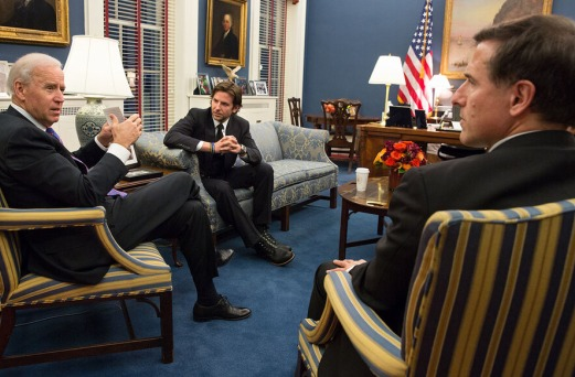 “Silver Linings Playbook” writer-director David O. Russell missed the Writers Guild panel in Hollywood last night for a good reason. He was in Washington, DC on Thursday, visiting Vice President Joe Biden with his star, Bradley Cooper. They were there to discuss programs and tolerance for mental health issues. “Silver Linings” continues to go nuts at the box office.