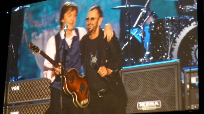 But everyone came to see Paul and Ringo. After Ringo– the greatest rock and roll drummer ever– performed “Matchbox” and “Boys,” and led a singalong in “Yellow Submarine,” McCartney spoke to the audience.