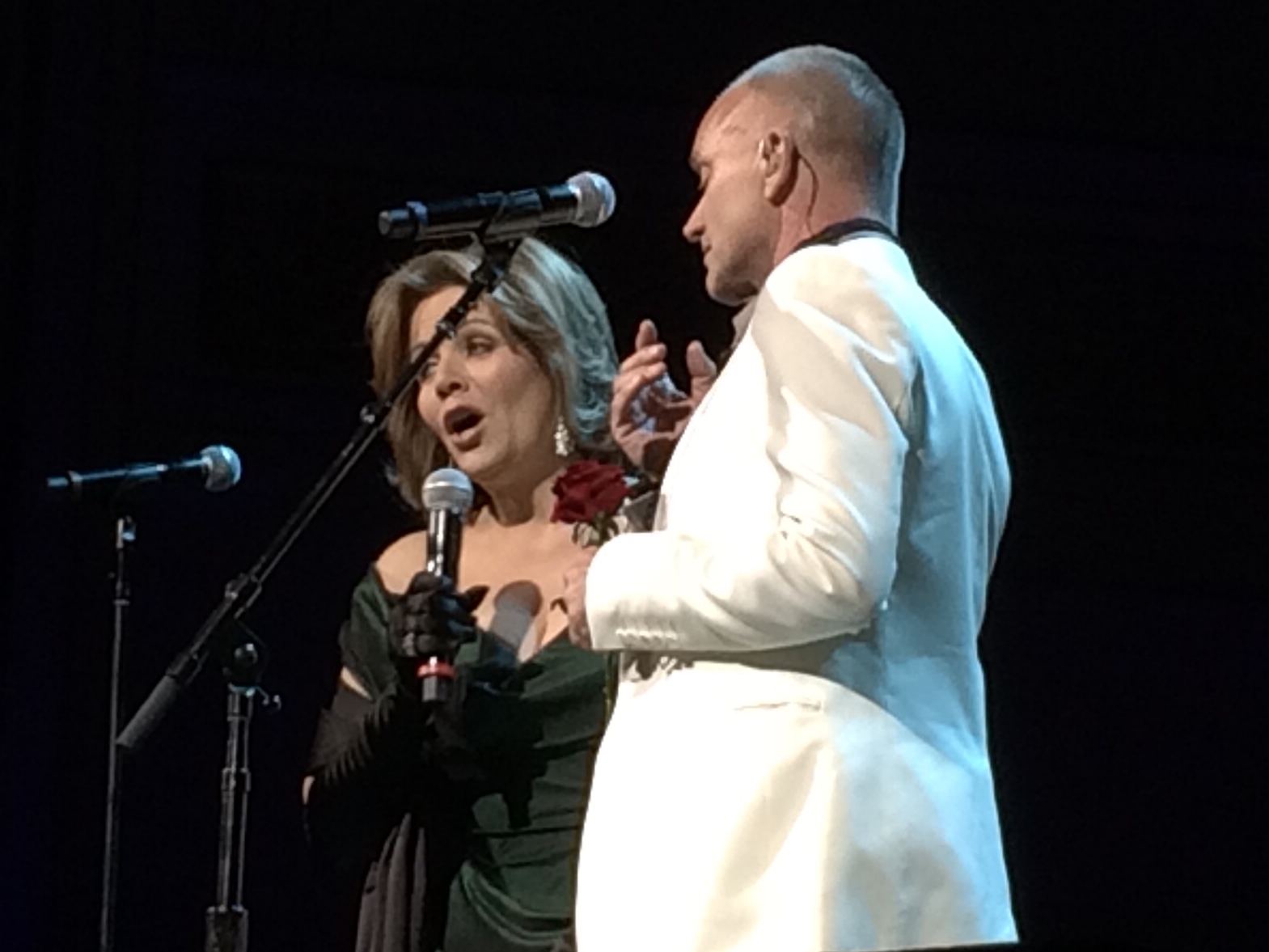 All of Sting’s family was there: six kids, two grandchildren (including a 12 week old baby Chloe), sister Anita, loads of friends, loyal Rainforest concertgoers from the last quarter century, as well as pals like Rita Wilson, billionaires Ronald Perelman and Len Blavatnik, and Melanie Griffith– friends with Sting since their classic film “Stormy Monday” some 25 or more years ago.
