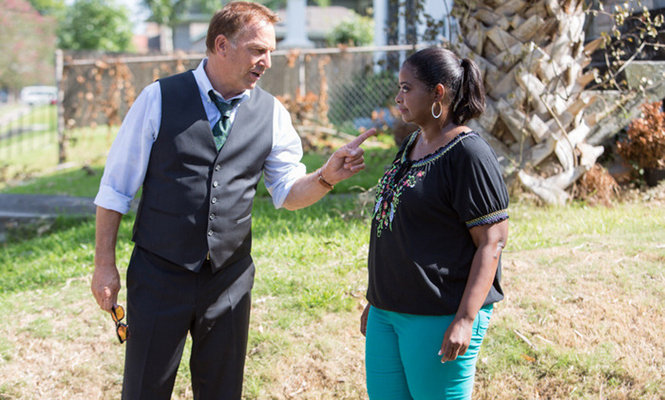Now Binder has taken a chapter from his own life and reworked it into a story of a young grandfather (Costner) whose wife dies suddenly. The man then must defend custody of the couple’s 7 year old granddaughter, who is black, and precocious, and who they’ve been taking care of since their daughter died in childbirth. The little girl’s biological father’s family (the grandmother on that side is Octavia Spencer, who’s a knock out in this movie) wants custody. In addition to Spencer, Anthony Mackie is solid as usual as Spencer’s attorney brother.