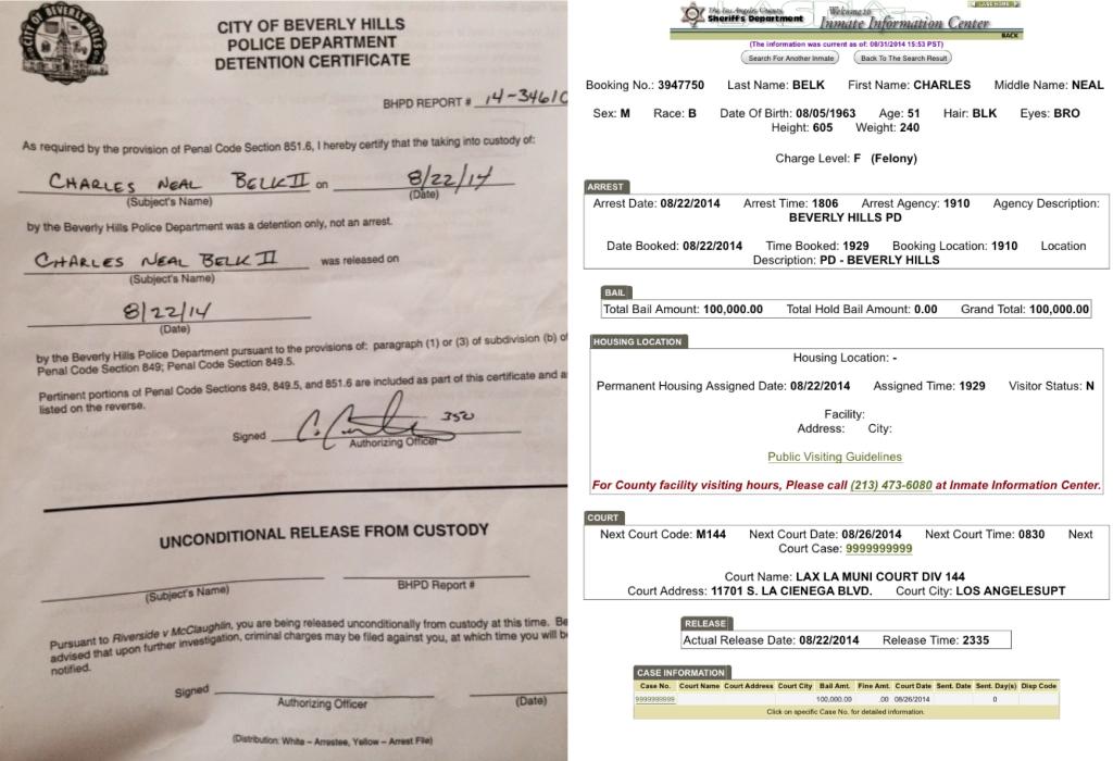 Charles Belk was wrongly–and quite disgustingly– arrested last week in Beverly Hills. His crime? Walking while black. The BHPD saw Belk — a TV producer and actor — in Beverly Hills and decided he fit the description of a wanted bank robber. They arrested him. The story made headlines. Belk — who has an MBA from the University of Indiana and a certificate from the Harvard business program– thought when he was finally released that there would be no record of what happened. Wrong. There is indeed a permanent record now in the LA Sheriff Dept. website. I’ve just seen it, and anyone can access it.