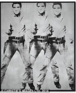 What a night in the art world! No recession on West 49th St. as Christie’s auction house had a record night with $852 million in sales. Eleven of the painting s were by Andy Warhol. They went for a total of $200 million including one, Triple Elvis [Ferus Type], 1963, that went for $81,925,000. Another, Four Marlons, 1966, came in at $69,605,000.