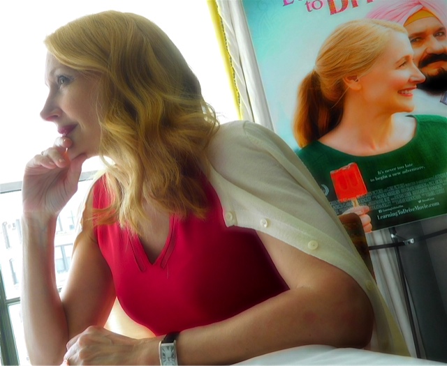 Clarkson is persistent and a take-charge person. The day before at press roundtables, she told journalists that “Learning to Drive” had been an obsession for nine years, since she read the New Yorker essay on which the film is based. During the press event someone next door started hammering on the wall disrupting everyone’s concentration. Clarkson walked next door and made them stop working until after the press event was over. She told me she felt bad for we reporters, who she described as “nice, smart, fun people.” No wonder journalists love her.