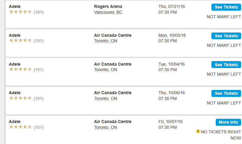 Want to see Adele live and in concert? Forget it. Tickets to her U.S. tour sold out in minutes today. Scalpers grabbed them up in fistfuls. Ticketmaster’s website indicates the party is over. Stubhub.com is where the action is. Good seats go for $10,000 or more.