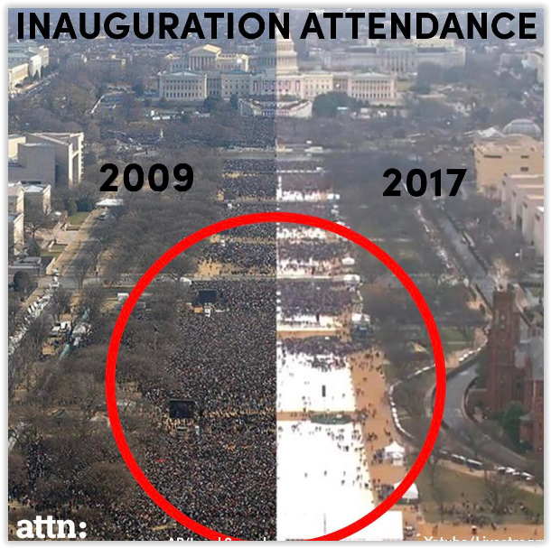 Trump and Spicer are now focused on how small or large the Inauguration was– it was dwarfed by Obama 2009 and by Saturday’s March. Plus the TV ratings– except on Fox News– were bad bad bad.