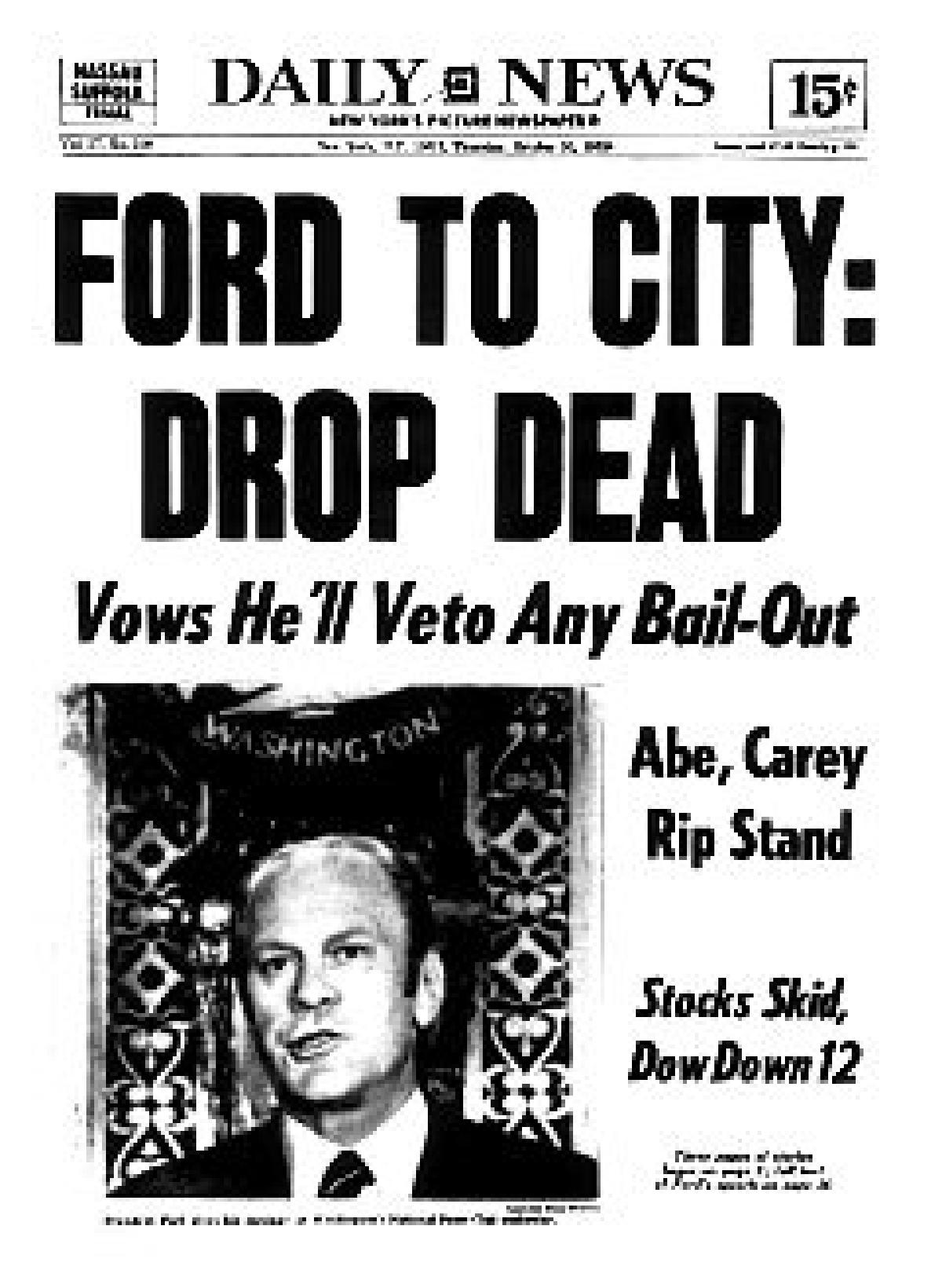 amd-ford-to-city-jpgFriday’s cover of the New York Daily News reads: “Trump to World: Drop Dead.” It’s meant to evoke the famous Daily News cover from October 1975 when President Gerald Ford refused to step in and save New York from financial ruin. We got the last laugh on Ford– look at thriving New York now. And we’ll get the last laugh on Donald Trump, the most mocked politician in the world– by the world.