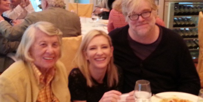 Here’s what I wrote last June, 2016. I took the accompanying photo of Liz, Cate Blanchett and the late Philip Seymour Hoffman at a lunch for “Blue Jasmine.”