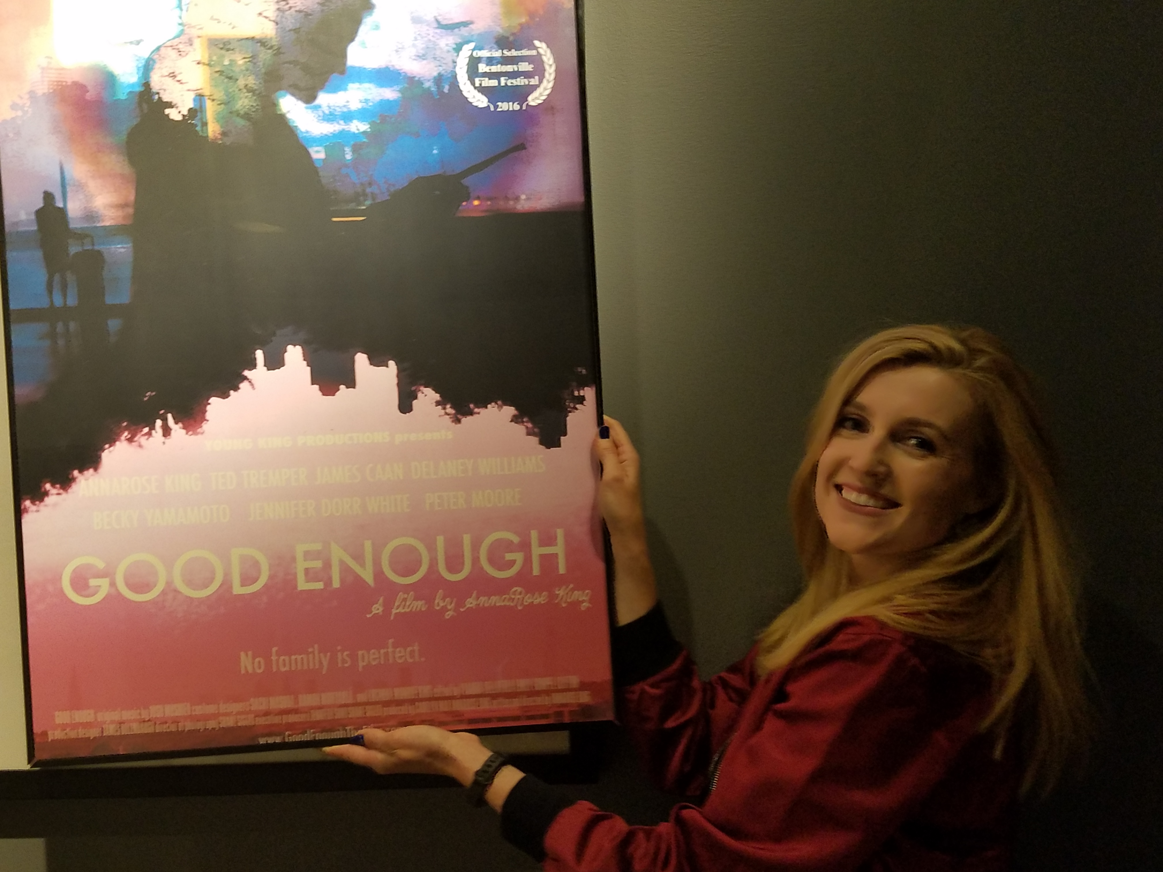 Is Anna Rose King an heiress? I have no idea. But she graduated from NYU Film School and made her movie on the cheap. She shot “Good Enough” guerilla style. “I dressed up in my flight attendant uniform and we just shot in JFK and LaGuardia. La Guardia was really easy,” she told me. “Everyone’s filming something!”