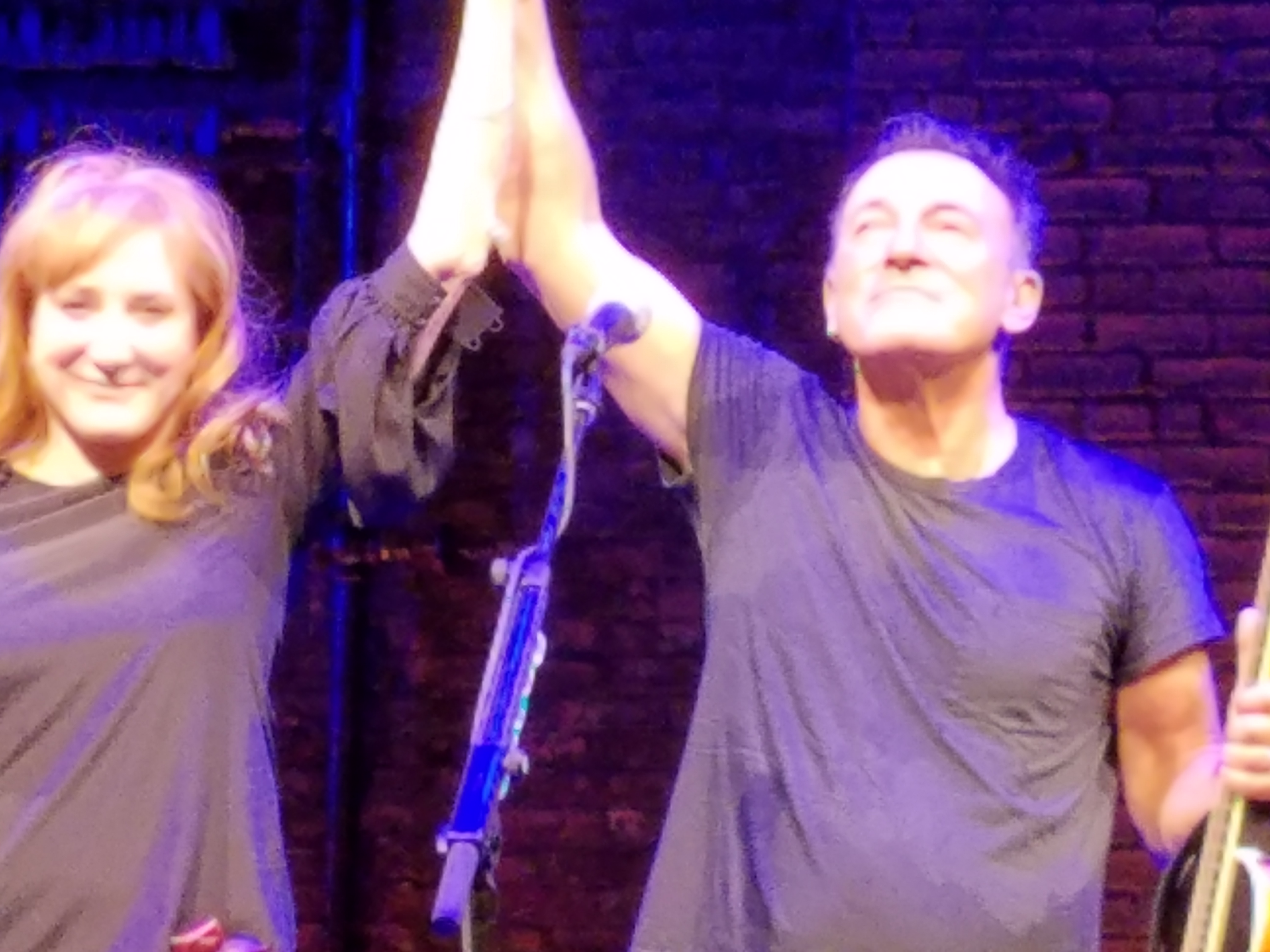 Sometimes he is somber. A highlight of this show is “The Rising,” written about 9-11. His face is different when he sings it. That’s when he transcends a night with a rocker on Broadway. Equally moving is “Land of Hope and Dreams,” toward the end, segued into from the rousing “Dancing in the Dark.” Because you  see, like Steven Spielberg who admitted to being a patriot in his documentary, Springsteen is one, too. That’s always his bigger picture.