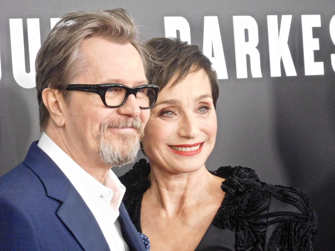 Oldman was joined at the premiere by castmates Kristin Scott Thomas, who plays Clemmy Churchill, the PM’s wife) and Ben Mendelsohn, who takes on stuttering King George (who we all know so well from “The King’s Speech”). He is not related to the late great composer Felix Mendelssohn, we determined. “But I did like his father,” Ben said, referring to the 18th century philosopher Moses Mendelssohn, a person likely no one else in the room had ever heard of. Mendelsohn is the kind of actor you look forward to seeing in films, and he’s in a lot of them these days. He’s like the new Alan Rickman, we said.