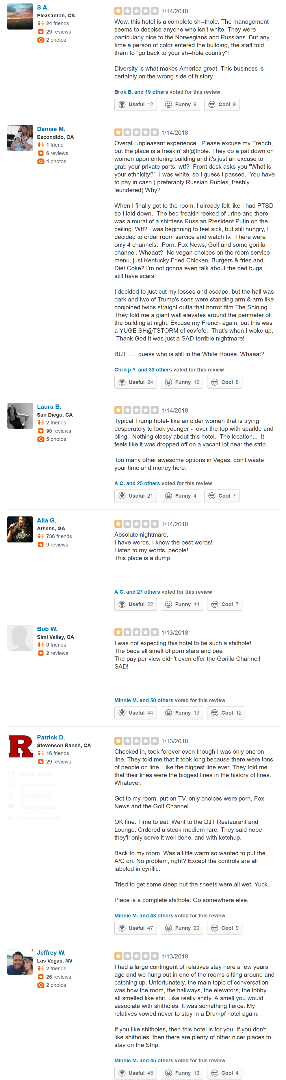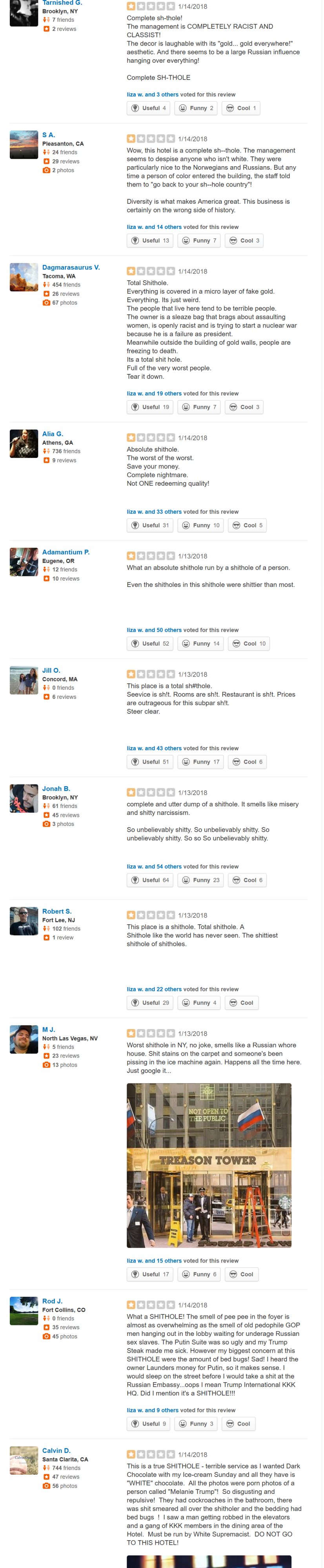 Trump Hotels in NY, DC, Vegas on Yelp! Reduced to One Star Ratings with “Sh*thole” Reviews