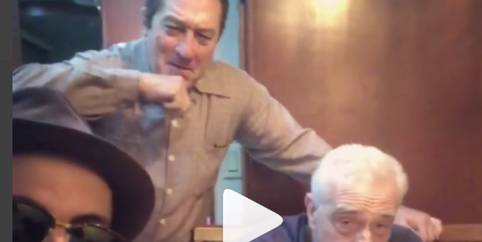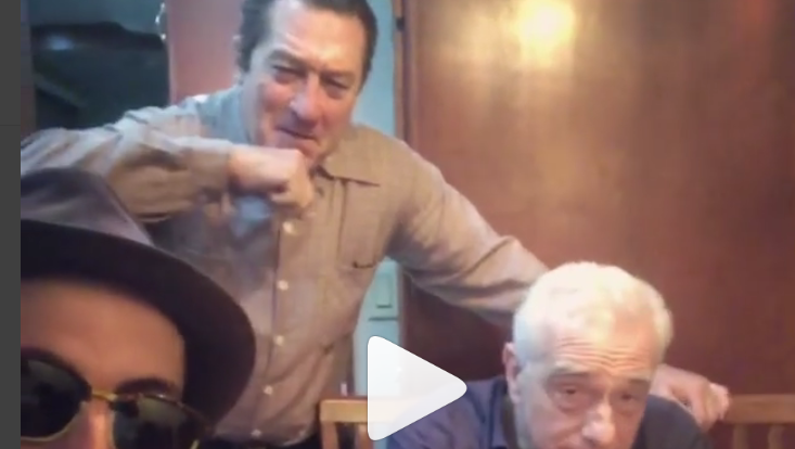 Anyway, JR dropped by Martin Scorsese’s set for “The Irishman” and brought his cardboard cut out of Varda– it makes it easier for travel purposes. JR posted this video of Scorsese and Robert DeNiro– obviously in makeup for his role of labor organizer Frank “The Irishman” Sheeran in the movie. It’s pretty funny. And inadvertently we get to see DeNiro made up as a younger Sheeran, who is likely to have killed Jimmy Hoffa. (Apparently, Scorsese is also using CGI to de-age DeNiro.)
