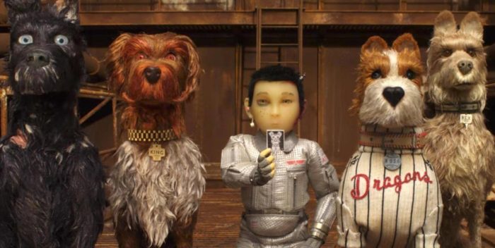 So here we are with Wes Anderson, truly barking up the right tree. He’s made a brilliant film that far exceeds any regular animated film. It’s a gem, and a piece of art. This story of Man Denigrates Dog is set against an outstanding backdrop created by Paul Harrod, Adam Stockhausen, Curt Enderle and hundreds of artists. Just about every frame has to be studied individually while the snappy dialogue continues– for references to art, history, and culture. Not only that– just the depth of the frames, augmented by tricky lighting, makes the dogs seem three dimensional.