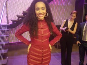Tonight their 24 year old Broadway revue, “Smokey Joe’s Cafe,” was revived in New York for the first time. This version is off Broadway, at what used to be called the Little Shubert, now Stage 42. It’s a big deal. Philip Smith, head of the Shubert Organization, was there. So was Stoller, 85 years young, and his singer-songwriter wife Corky Hale. Plus, people came who worked on the original show, like actor Michael Park, and many of the musical directors. I also finally got to meet a great Broadway performer, Christina Sajous.