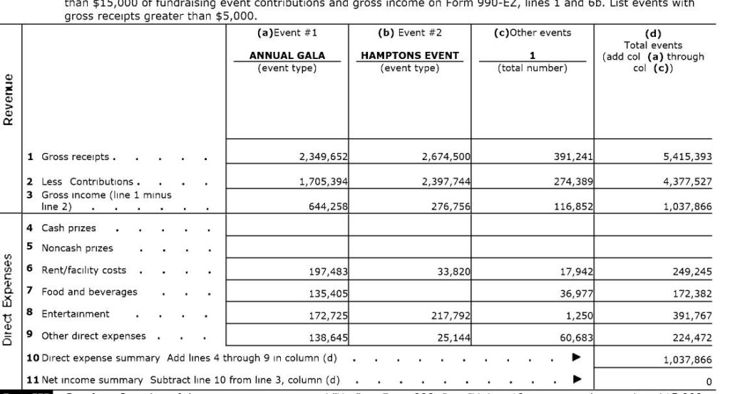 According to an insider connected to the annual soiree, it was only last year– for which tax records haven’t appeared yet– that Perelman stopped charging half the expenses to the Apollo Foundation. As recently as 2016, the Apollo was billed $217,792 for entertainment, $25,144 for “other direct expenses,” and $33,820 for facility charges– i.e. rent!