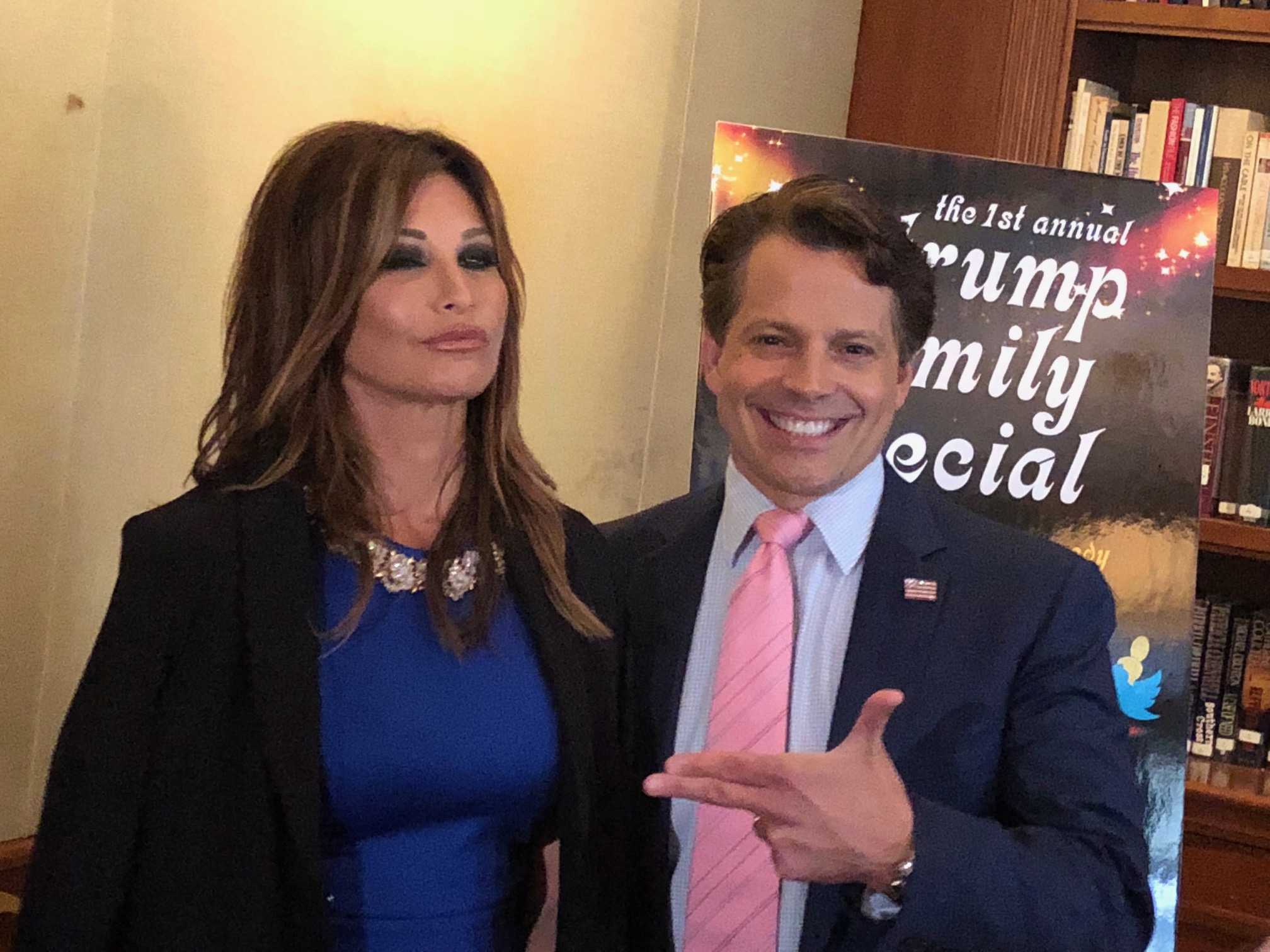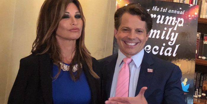 “This is my second press conference,” said Anthony Scaramucci, Trump’s short-lived former White House Communications Director to journalists Wednesday afternoon in the James Madison Room at the Princeton Club in Manhattan. The Mooch was behind the podium moderating, just like old times, except this was a faux press conference with a faux “Trump Family,” led by film, television and stage actress Gina Gershon (Bound, Showgirls), who plays Melania Trump.