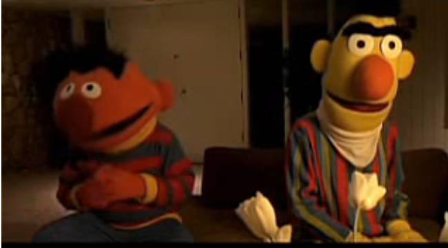 “Sesame Street” and Childrens Television Workshop never liked the suggestion that Bert and Ernie might be gay. A short film called “Ernest and Bertram” by Peter Spears played once at Sundance a dozen years ago. I wrote after seeing it– at 8:30 in the morning– that their lawyers were probably already on planes for Park City. Now thanks to YouTube the video lives, but pretty much in obscurity.