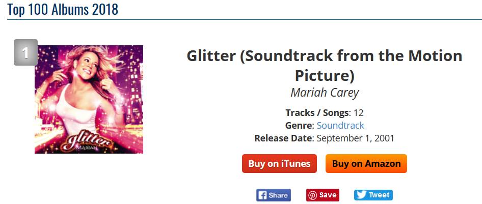 Maybe Mariah’s including “Glitter” in concert ticket bundles. But even that’s weird since usually you’dbe doing that with the new album. Plus “Glitter” doesn’t really exist anymore except on iTunes. Amazon also sells it digitally. But Spotify doesn’t even have it.