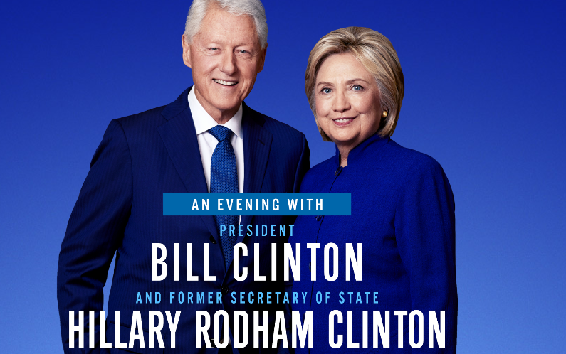 Tuesday, December 4th, the nice before President George H.W. Bush’s funeral in Washington DC– you can still get tickets to see Bill & Hillary Clinton in concert in Sugarland, Texas.