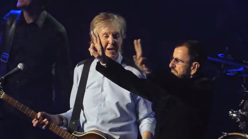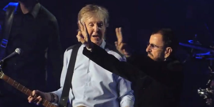 Sunday night in London, at the O2 Arena, Paul McCartney had some nice guests join his band for “Get Back.”