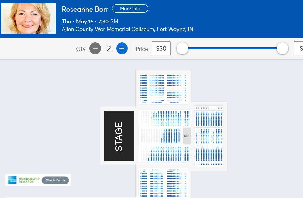 I told you last winter that Roseanne Barr had book four dates in May to do her stand up comedy show. There were two in Indiana, and one in Pennsylvania and North Carolina each.