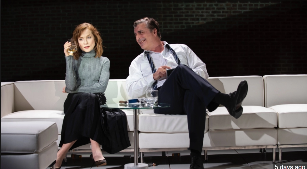 On the night we attended, lightning lurked in the Manhattan sky, and soon a heavy, epic rain pounded on the Linda Gross Theater’s roof. Was hell breaking loose? A voice instructed the actors on stage, Huppert and Odessa Young, playing a nurse among other roles, to exit stage left, and the audience to stay seated. We could not tell, was this a fourth wall break, or a tech mishap? The play resumed, sound system restored. As the rain tapered off, an audience that included the great Brenda Vaccaro, art dealer extraordinaire Larry Gagosian, and a couple who flew in from Paris for a night just to see Huppert in this role, lingered on to congratulate the star. The man said, “She’s worth it.”