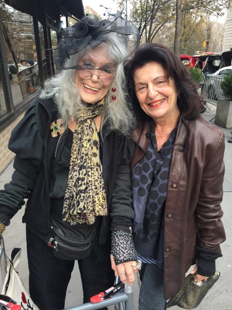 We became friends after a party for the poet Ira Cohen in the early ‘90’s. When I found out she played competitive chess, I invited her home to play with my husband. And she came. By that time she was working less, partying more. Over the decades I’d known her, sometimes she appeared on Page Six, often in unflattering ways because she had the untoward reputation of being everywhere. She loved to go out, and even when walking was a challenge, she’d make her way to a movie premiere or fashion show and sashay her way across a red carpet. She often wore a hat that screamed “Famous” in mirrored silver letters. Cab drivers kibitzed with her. Restaurants gave her food to take home, whole steak dinners in a doggy bag. Everyone seemed to know and love her. But sometimes she would say, you are lucky you can pass. Meaning no one could accuse you of being a freak, because sometimes tourists would attack her for her flamboyant looks.