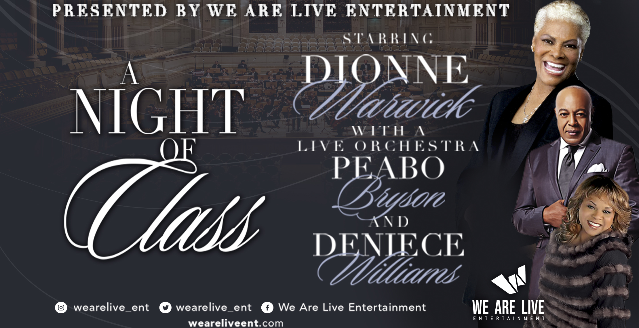 Concerts starring Dionne Warwick, Peabo Bryson, and Deniece Williams — scheduled for tonight, Saturday, and Sunday nights in Virginia, New York, and Brooklyn — have been cancelled.