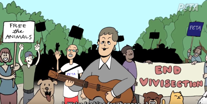 Paul McCartney has always been an avowed animal rights activist. His second album was called Ram, and he was never sheepish about his devotion to protecting four legged friends. Now he’s issued a video for a 1993 protest song (it’s very good — he can write catchy songs, did you know?) called “Looking For Changes.” McCartney did this for PETA, everyone should start singing along and getting with the program. (Personally, I never tested my cats, they always failed!) Good work, Paul!