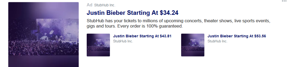 The frightening part there: StubHub is running ads on Yahoo and other places for their hundreds of cheap Bieber seats. See below.