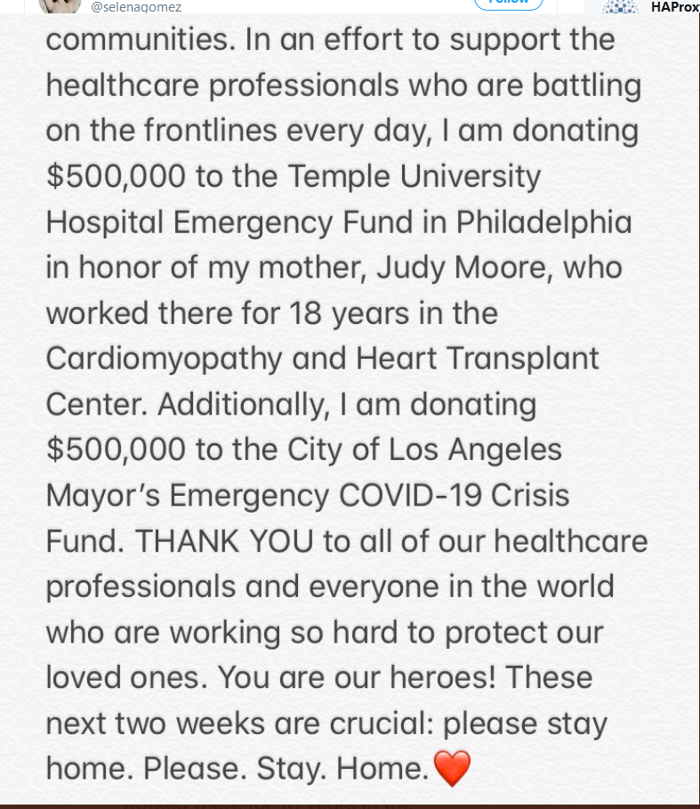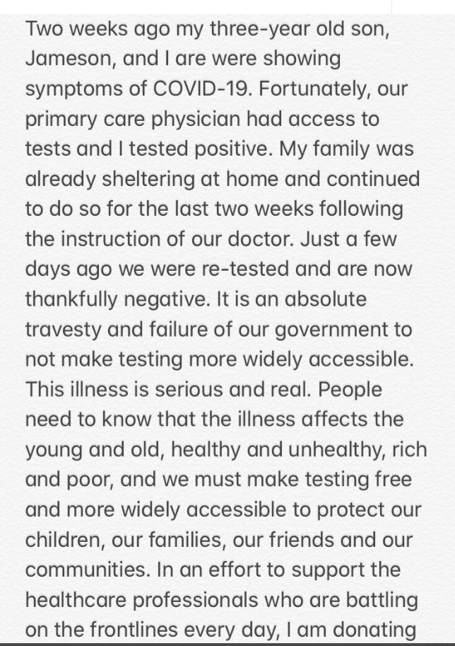 Singer PiNK says she and son Jameson tested positive for COVID-19. Now, re-tested, they are negative. Pink says she’s donating a total of $1 million to the cause. Temple University’s Emergency Hospital Fund will receive $500,000. Another $500,000 will go to the city of Los Angeles Mayor’s Emergency Fund.