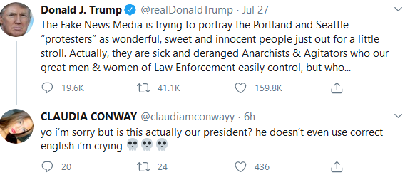 “yo i’m sorry but is this actually our president? he doesn’t even use correct english i’m crying “