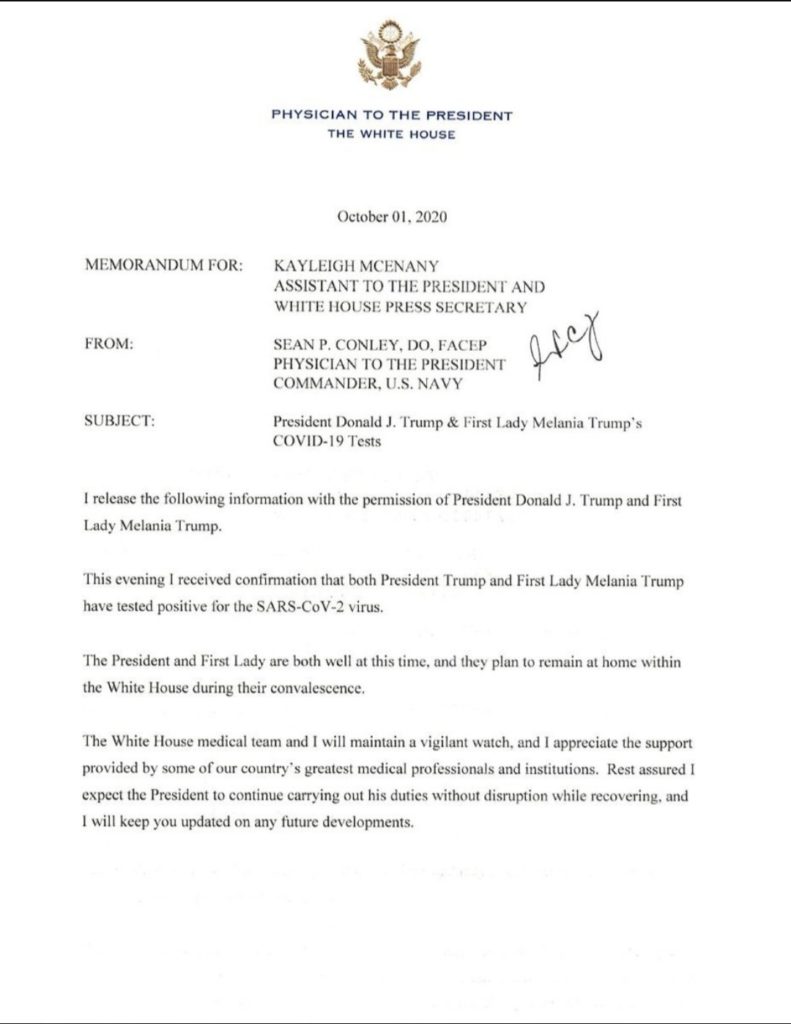 — Donald J. Trump (@realDonaldTrump) October 2, 2020