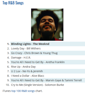 Also in top 10 are Bill Withers’ “Lovely Day,” which is featured in an omnipresent AllState commercial. “Lovely Day” was never the hit on the same magnitude as “Lean on Me” or “Ain’t No Sunshine,” but over the years it’s grown and grown. The song sounds particularly good in this commercial.