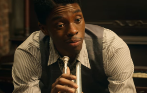 To compensate for the lack of what I’d call “action,” we have the individuals. Boseman, who looks thinner than in the past (sadly we know why), and a little older than his years, still commands the film as Levee. He’s tired of being on the team, he wants his own band and has written the songs for it. They’ll be hits one day, one way or another. But Levee is also pent up with rage over his inability to make things happen. His eyes flash with danger even while he’s making sweet sounds with his horn. And when Boseman– in his finest moment of his short career —Â delivers his principle monologue about Levee’s childhood, you worry about what lurks underneath.