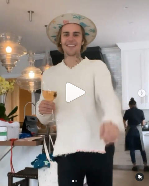 Lonely: Watch Justin Bieber Dance Around with a Glass of Wine While His Cook Prepares His Meal