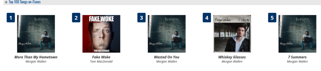 Well, it’s a few hours later and guess what? Morgan Wallen is bigger than ever. He has the numbers 1, 3, and 4, 5 and 8 singles on iTunes, actually most of the top 100 are his singles with fourteen — 14 — more floating around. Fans downloaded his records all day.