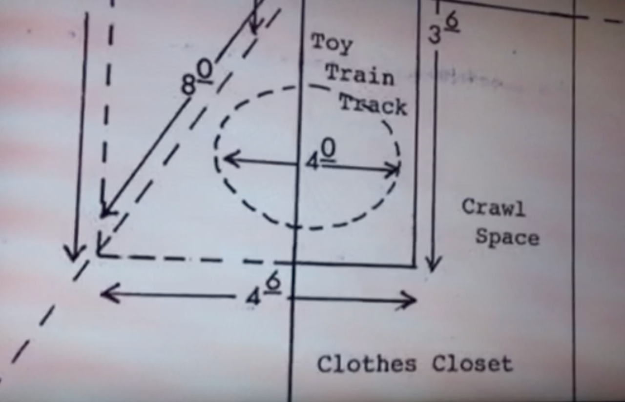 Someone sent me a clip of your big “Gotcha” moment from Episode 4 where you try to discredit @MosesFarrow’s claim that there was no functioning electric train set in the crawl space described in such detail by @RealDylanFarrow in her 2014 piece in @NickKristof’s @NYTimes column. Your supposed “checkmate” move presents a diagram of this space from the police report, showing a circle with the words “Toy Train Track.” *Cue ominous music.*